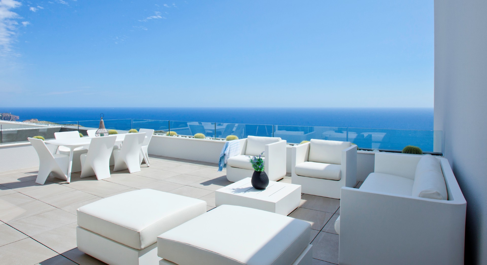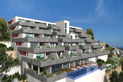 Overview: A development that, due to its location, enjoys the spectacular sea view of which Cumbre del Sol is known internationally. A truly perfect place for those who want to enjoy the Mediterranean climate and beautiful sunrises, in a private residential complex by the sea.The penthouse distinguish themselves by their modern and elegant design and their large surfaces: the smallest has a living area of ??more than 100m² and a terrace of 47m², excluding common areas. With two models with 3 bedrooms and 2 bathrooms and a model with 2 bedrooms and 2 bathrooms, so you can choose which fits best with your lifestyle. These properties are perfect for living all year round or enjoying during the holidays, thanks to a careful layout and their luxurious fixtures and fittings, with underfloor heating, air conditioning, home automation, wall cladding with wood panels or porcelain, wooden floors on terraces, custom-designed Krion bathroom furniture, ..., using high-end brands such as Inalco, Grohe, Krion, Mosso, Hakwood, Vescom, Duravit, among others.This development would not be complete without the spacious common areas, allowing you to the summer months can enjoy the rectangular outdoor infinity pool with a large terrace and the covered wellness area with heated pool, Jacuzzi, sauna and Turkish bath in the rest of the year; everything you need to relax by the sea. PRICES FROM € 570,000.